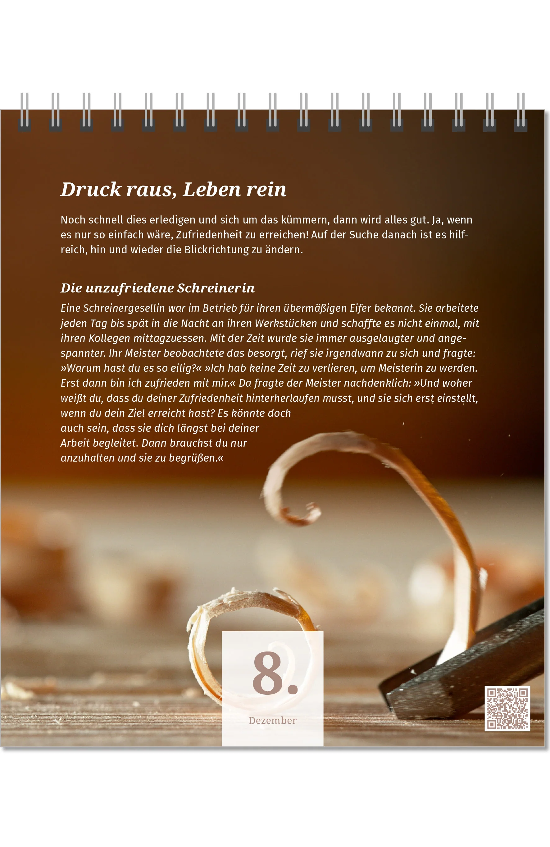 Seit 2022 erscheint der Adventskalender auch in gedruckter Form als Tischkalender zum Aufstellen mit Spiralbindung. Mit seinen 24 aufbauenden Kalenderblättern ist er ein inspirierender Begleiter durch die Vorweihnachtszeit und ein ganz besonderes Geschenk für Freunde und Verwandte oder auch an sich selbst.