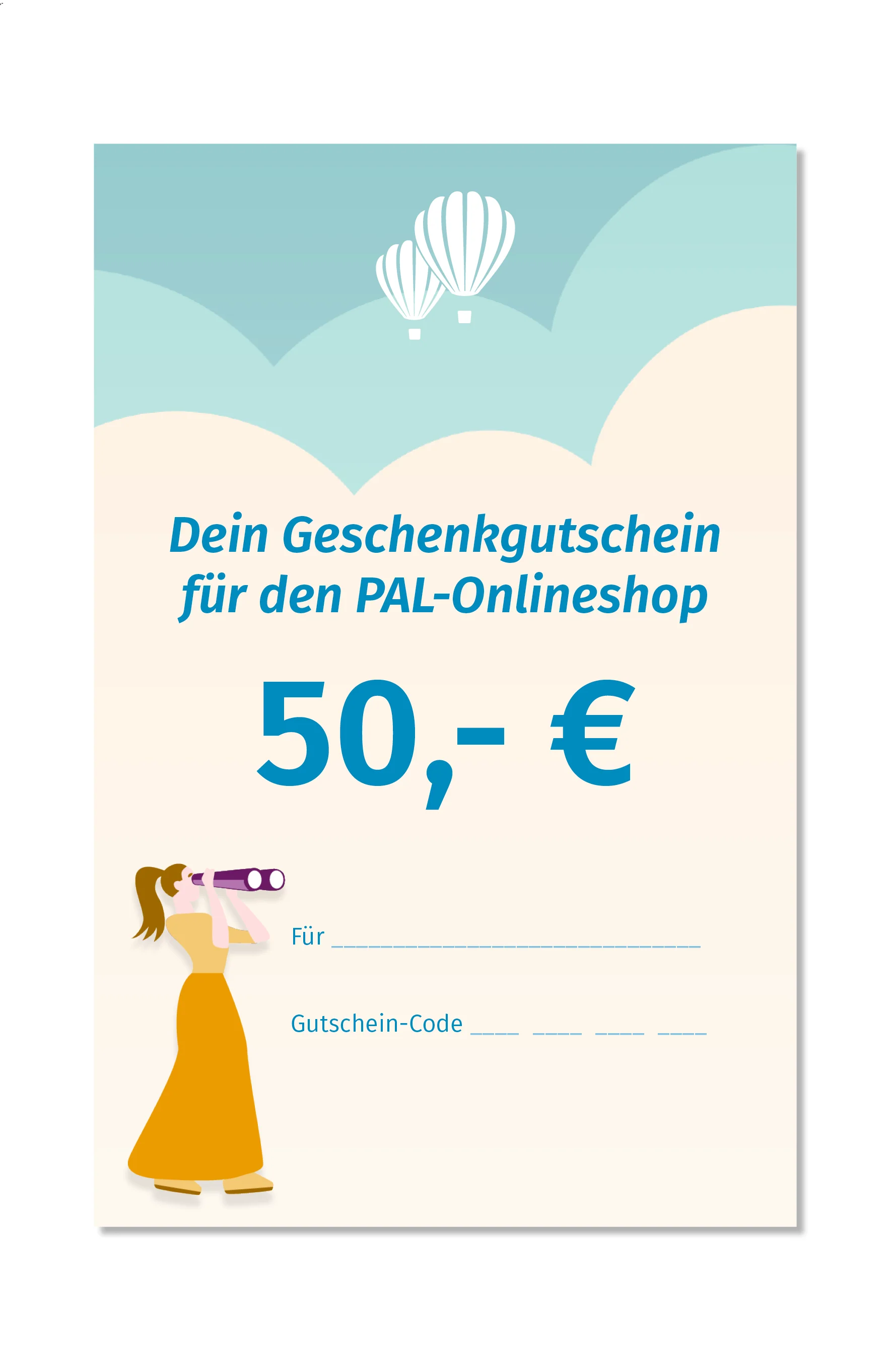 Der Gutschein kann für alle angebotenen Produkte im PAL Onlinehop eingelöst werden, nicht jedoch für Käufe von PAL-Produkten bei anderen Händlern und Onlinehändlern. Nachträglich können die Beträge auf den Geschenkgutscheinen nicht verändert werden.